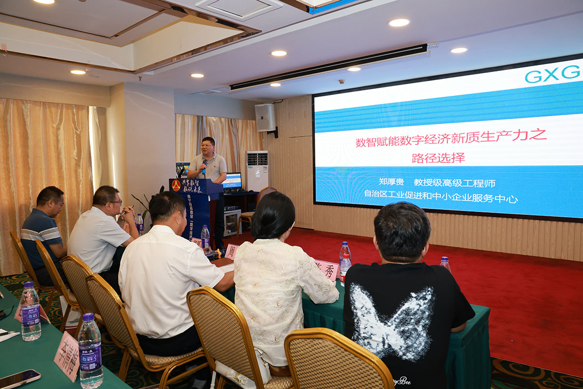 广西工业和信息化研究院院长郑厚贵作了《数智赋能数字经济新质生产力之路径选择》的主题分享,透过国家关于发展新质生产力的战略部署,郑院长介绍了数字经济全国和广西的产业发展情况、数字化转型升级典型案例,结合广西资源禀赋和产业发展特点,提出了数智赋能发展新质生产力的路径等。强调发展数字经济,关键是要做牢产业基础数据仓,必须协同推进数字产业化和产业数字化。