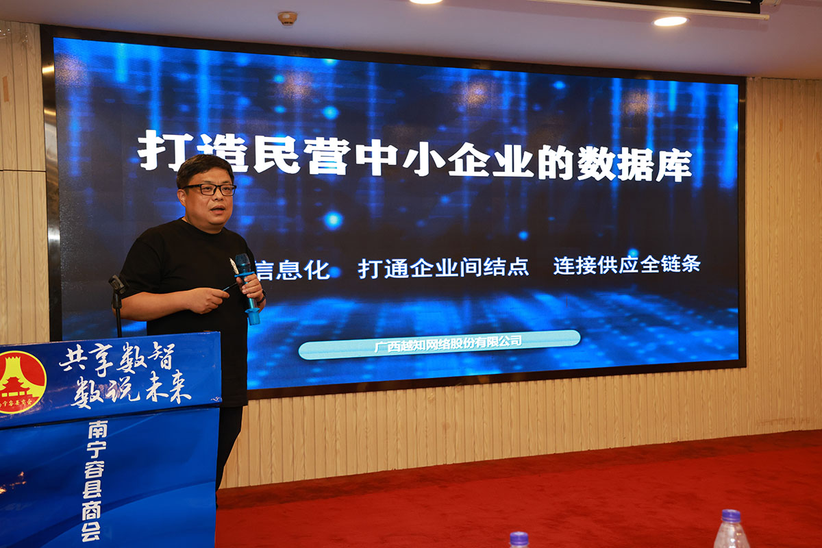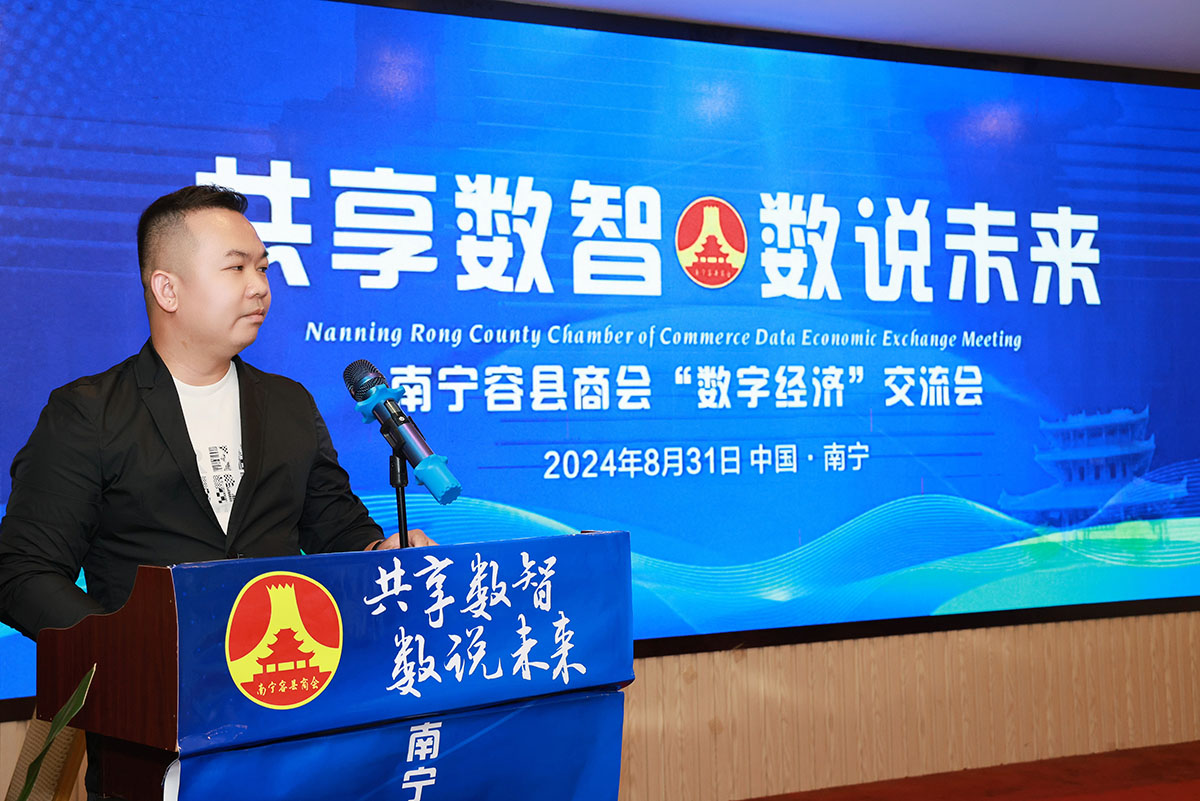 2024年8月31日,南宁容县商会在南宁召开以“共享数智数说未来”为主题的数字经济交流会,越知网络董事长朱浩应邀参加此次交流会。